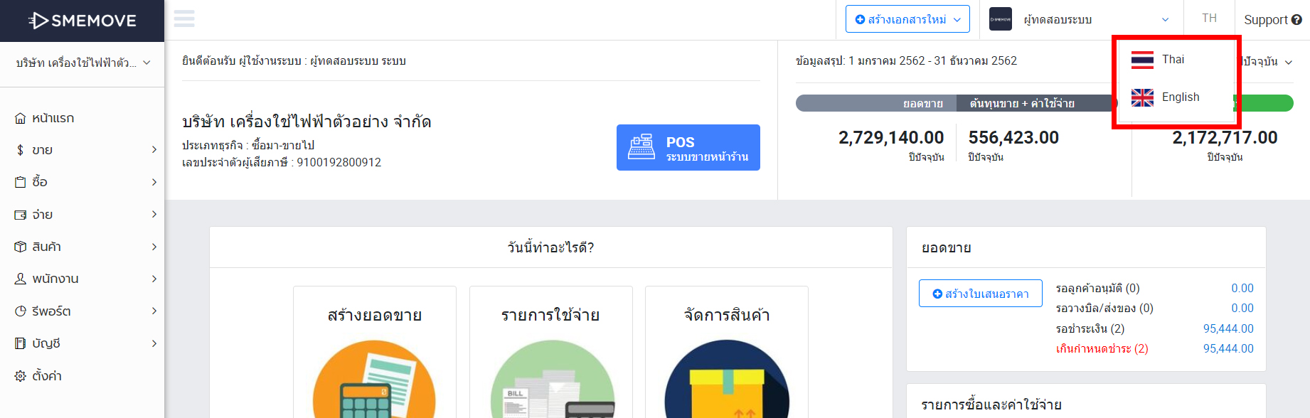 ตอนนี้ระบบ SMEMOVE ของเราเปลี่ยนภาษาในระบบได้ ทำให้ทำเอกสารเป็นภาษาอังกฤษได้แล้ว